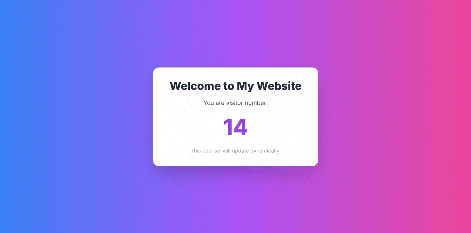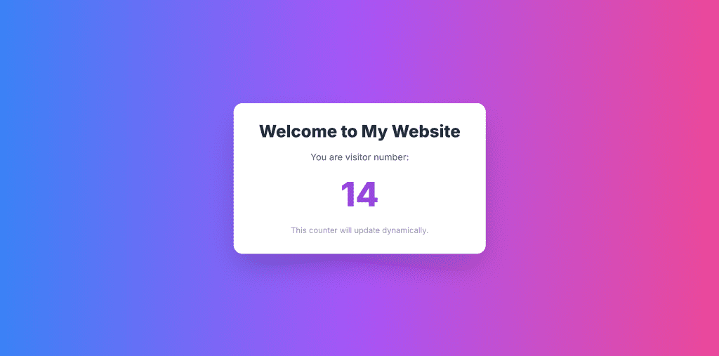 - It creates a visually attractive webpage with a gradient background and a centered card displaying a visitor counter