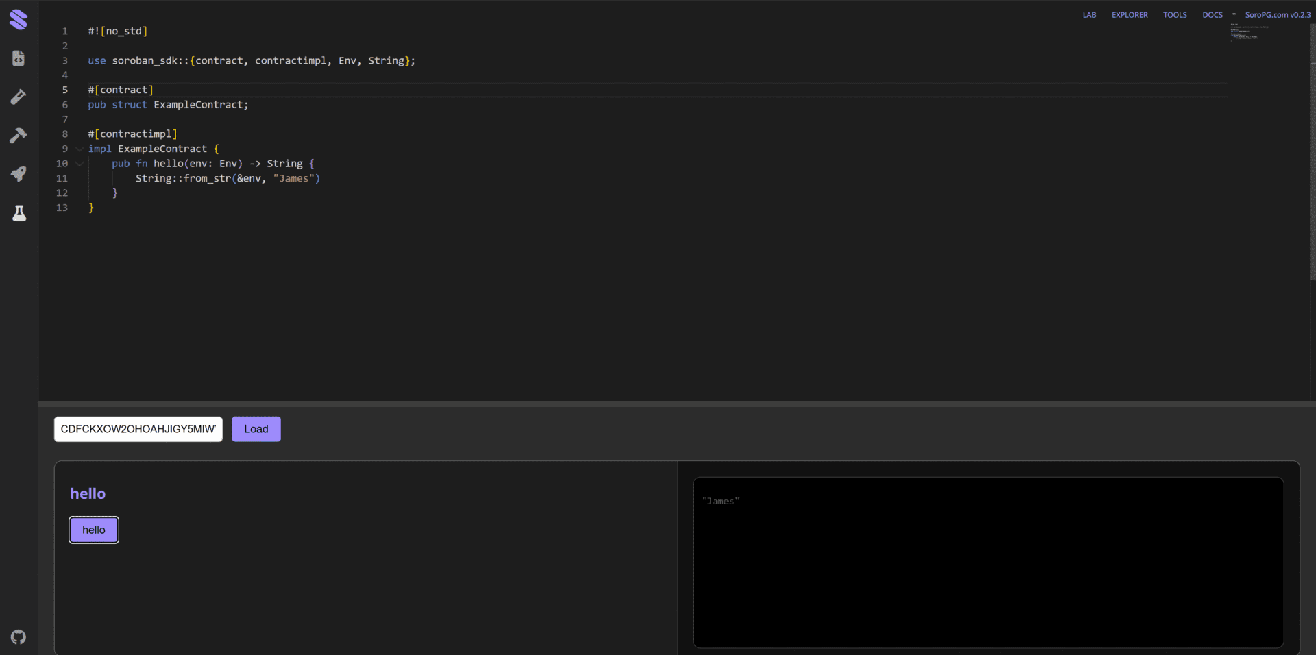 We can run this in soropg or use the stellar cli to interact with the contract and run unit tests via the command line.
